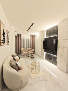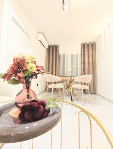 Apartament znajduje się w spokojnej okolicy, w pobliżu sklepów, restauracji, komunikacji miejskiej oraz pełnej infrastruktury miejskiej. Lokalizacja gwarantuje szybki dostęp do morza, a jednocześnie komfort codziennego życia bez konieczności korzystania z samochodu.