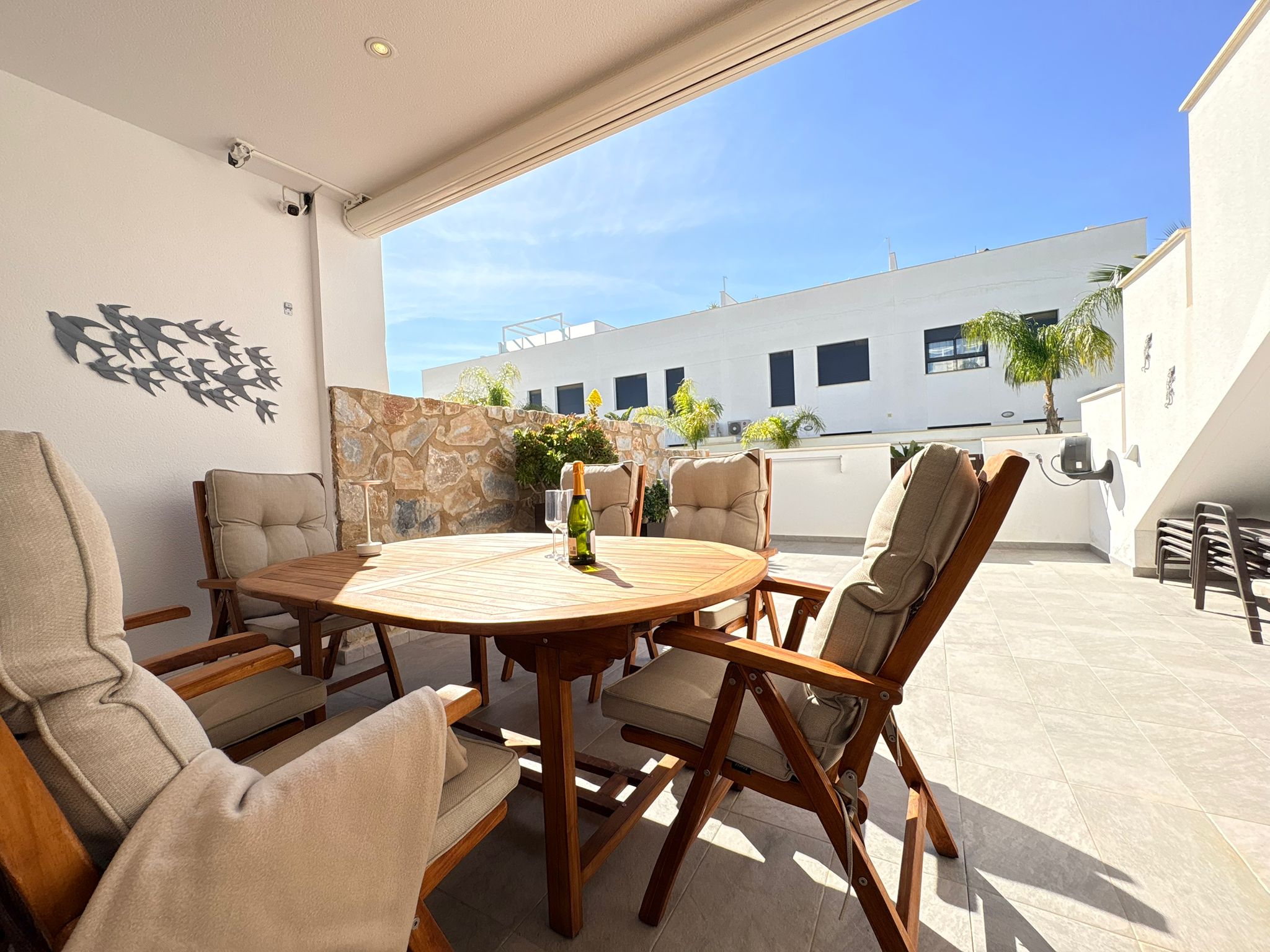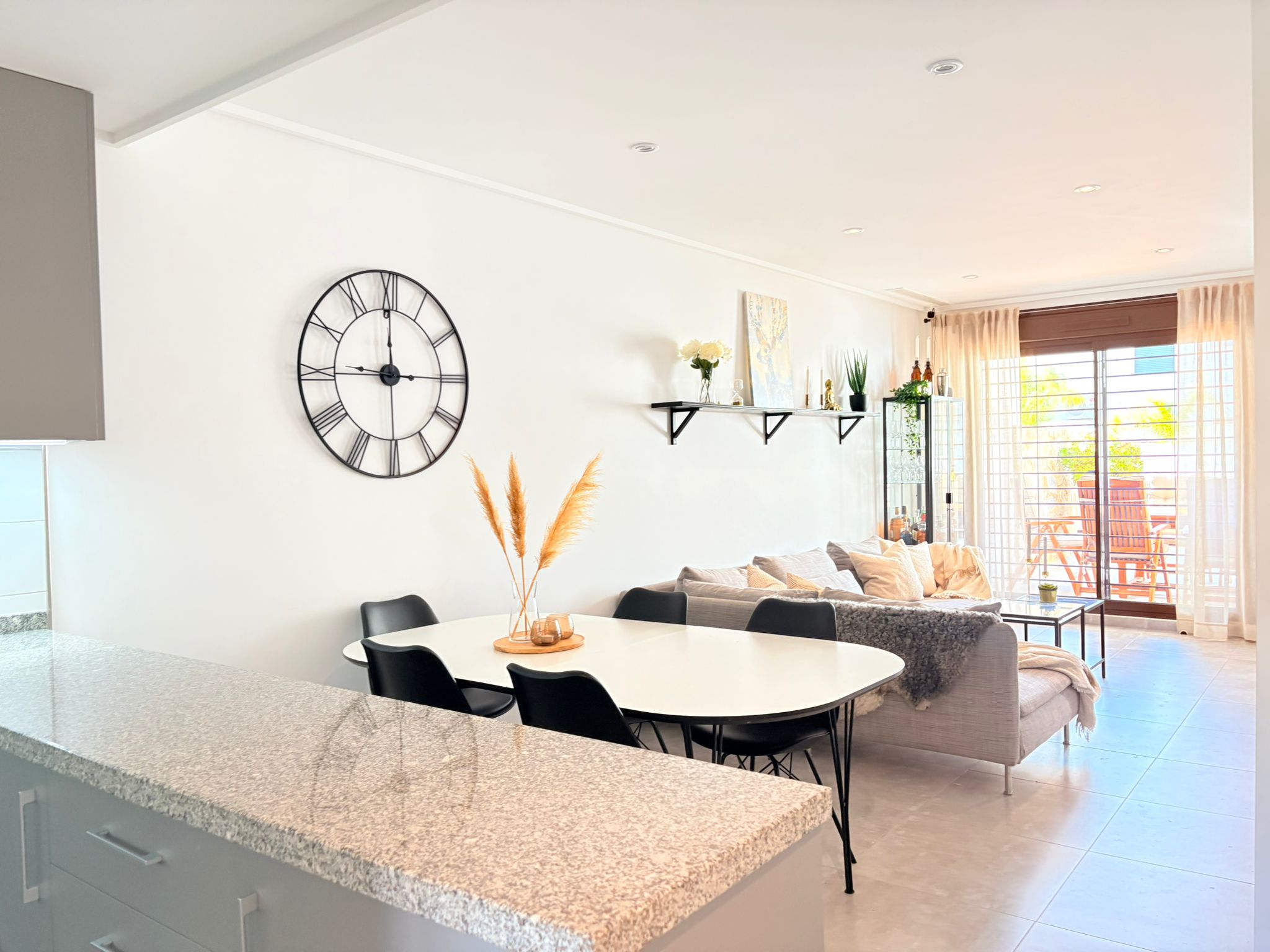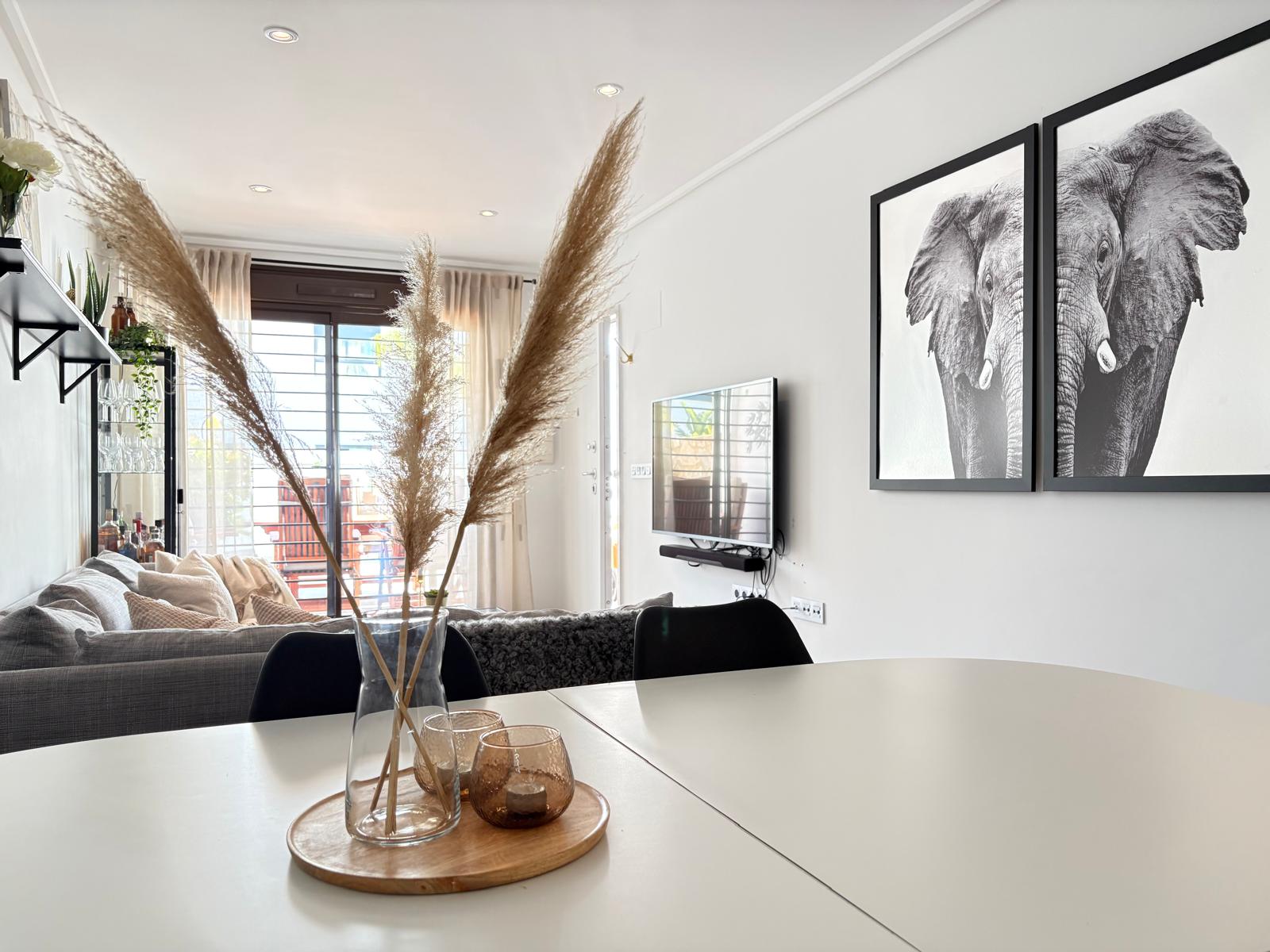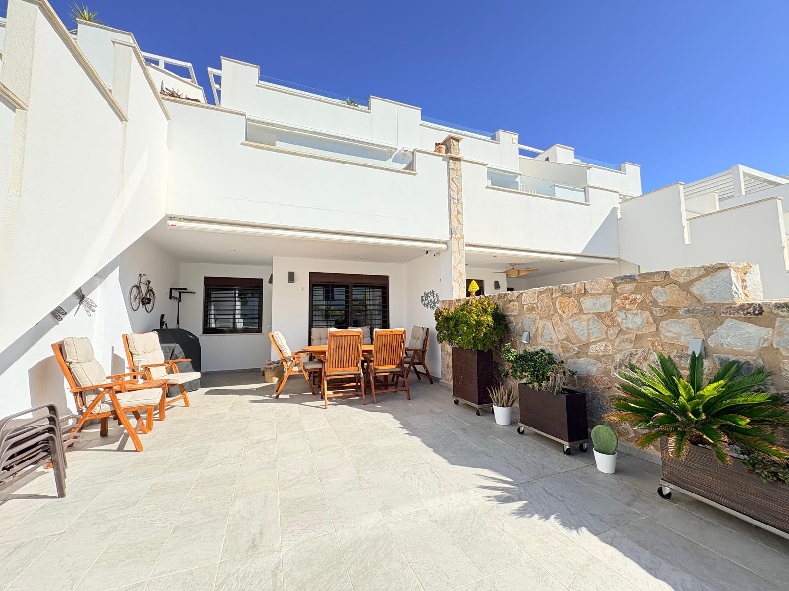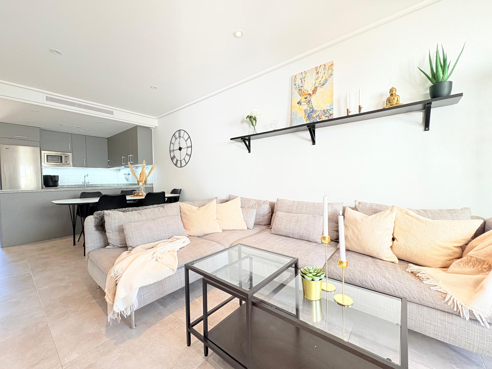 Wybudowana w 2019 roku nieruchomość łączy nowoczesny design z przytulnymi przestrzeniami i obszernymi terenami zewnętrznymi, tworząc idealne miejsce do korzystania z życia pod hiszpańskim słońcem. Z dwiema przestronnymi tarasami oraz powierzchnią zewnętrzną równą powierzchni mieszkalnej, możesz zaczynać poranki od kawy w słońcu i kończyć dzień relaksem na świeżym powietrzu.