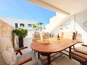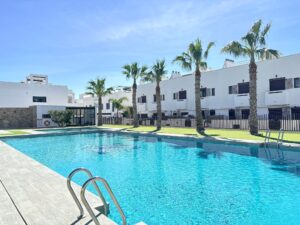 Witamy w pięknej Torre de la Horadada, gdzie śródziemnomorski urok łączy się z nowoczesnym komfortem. Położony w bardzo pożądanym kompleksie mieszkaniowym Porto Marina, ten elegancki apartament na parterze oferuje styl życia pełen słońca, morskiej bryzy i swobodnego życia przy wybrzeżu — zaledwie kilka kroków od plaży i wszystkich udogodnień.