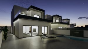 Luksusowe, nowo wybudowane bliźniacze wille w Benijófar – Costa Blanca Living Doskonała lokalizacja w Benijófar Te ekskluzywne, nowo wybudowane bliźniacze wille położone są w uroczej miejscowości Benijófar, jednej z najbardziej pożądanych lokalizacji na wybrzeżu Costa Blanca. Znane z połączenia tradycji i nowoczesnego stylu życia, Benijófar oferuje wszystkie niezbędne usługi, w tym supermarkety, apteki, banki, restauracje i lokalne sklepy. Osiedle jest strategicznie położone zaledwie 10 km od złotych plaż Guardamar del Segura i tylko 30 km od lotniska w Alicante, co czyni je idealnym miejscem zarówno do stałego zamieszkania, jak i na wakacje. Przestronny i nowoczesny projekt Każda willa została zaprojektowana w nowoczesnym stylu, maksymalizując przestrzeń i naturalne światło. Układ obejmuje trzy sypialnie (jedną na parterze i dwie na pierwszym piętrze) oraz trzy łazienki (w tym jedną w piwnicy), dzięki czemu idealnie nadają się dla rodzin i gości. Otwarty salon z jadalnią płynnie przechodzi do w pełni wyposażonej kuchni, tworząc ciepłe i funkcjonalne środowisko. Duże okna zwiększają jasność w całym domu. Najwyższej jakości wyposażenie i dodatki Wille te wyróżniają się wysokiej jakości wykończeniem i przemyślanymi detalami: Piwnica o powierzchni 66 m2 z łazienką, galerią i pralnią Prywatny basen, solarium z grillem i zlewem Ozdobny kominek w salonie Prywatny parking na terenie działki Winda z piwnicy na najwyższe piętro 3 panele fotowoltaiczne i oświetlenie LED w całym domu Wstępnie zainstalowana klimatyzacja W pełni wyposażone łazienki z meblami i kabinami prysznicowymi Działki o powierzchni od 200 m2 Styl życia i otoczenie Benijófar łączy w sobie urok tradycyjnej hiszpańskiej wioski z wygodą nowoczesnych usług. Miłośnicy przyrody będą zachwyceni pobliskim parkiem przyrodniczym, idealnym do spacerów i jazdy na rowerze. Miłośnicy golfa znajdą pole golfowe La Marquesa Golf w odległości zaledwie 5 km, a kilka innych najlepszych pól golfowych znajduje się w promieniu 15 km. Rodziny mogą odwiedzić parki wodne w Rojales (4 km) i Torrevieja (12 km) lub zwiedzić tętniące życiem miasto Torrevieja, oddalone o zaledwie 12 km. Doskonałe połączenia komunikacyjne Wille mają łatwy dostęp do autostrad N-332 i AP-7, co zapewnia szybkie połączenie z Alicante, Elche, Orihuela Costa i Murcją. Okolica oferuje idealną równowagę między spokojem, udogodnieniami i dostępnością. Twój wymarzony dom na Costa Blanca Doświadcz luksusu, komfortu i śródziemnomorskiego stylu życia w tych wspaniałych nowych willach w Benijófar. Skontaktuj się z nami już dziś, aby uzyskać więcej informacji i umówić się na oglądanie swojego przyszłego domu.
