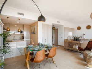 Duże tarasy, z których można podziwiać widoki na park naturalny, gaje pomarańczowe, góry i morze.