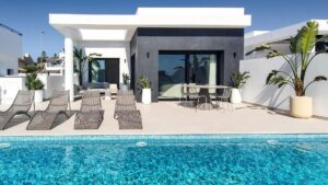 Nowoczesna, luksusowa willa z widokiem na góry w Ciudad Quesada na Costa Blanca Nowoczesny design i wyjątkowy komfort Odkryj tę elegancką, nowo wybudowaną willę w Ciudad Quesada, jednej z najbardziej pożądanych dzielnic mieszkaniowych na Costa Blanca. Położona na działce o powierzchni 300 m² z pięknym ogrodem i prywatnym basenem o wymiarach 4x10 m, willa ta stanowi idealne połączenie nowoczesnej architektury, naturalnego piękna i śródziemnomorskiego komfortu. Nieruchomość ma 245 m² powierzchni wewnętrznej rozmieszczonej na dwóch poziomach, zaprojektowanych tak, aby zmaksymalizować ilość światła, przestrzeń i funkcjonalność. Duże okna zalewają pomieszczenia mieszkalne naturalnym światłem i oferują imponujące widoki na góry i otaczającą przyrodę. Przestronny rozkład pomieszczeń z elastycznymi opcjami aranżacji Willa posiada 4 sypialnie, z możliwością stworzenia piątej sypialni lub dodatkowego salonu, idealnie dopasowując się do Twojego stylu życia. Na głównym piętrze znajduje się salon i jadalnia na planie otwartym, połączone z nowoczesną, w pełni wyposażoną kuchnią z wysokiej klasy sprzętem AGD, tworząc płynne przejście na taras i basen, idealne do rozrywki lub relaksu na świeżym powietrzu. Na niższym poziomie (piwnica) pozostałe sypialnie oferują świeżą i spokojną atmosferę, z bezpośrednim dostępem do ogrodu. Nieruchomość obejmuje również zamkniętą garaż, pralnię i wysokiej jakości wykończenia we wszystkich pomieszczeniach. Wysokiej klasy wykończenia i zrównoważone rozwiązania Każdy szczegół tej willi został starannie zaprojektowany, aby zapewnić komfort i wydajność. Obejmuje: W pełni wyposażoną kuchnię ze zintegrowanymi urządzeniami Łazienki z meblami, kabinami prysznicowymi i elektrycznymi wieszakami na ręczniki Klimatyzację kanałową (w pełni zainstalowaną) Wzmocnione drzwi wejściowe dla maksymalnego bezpieczeństwa Doskonała lokalizacja w Ciudad Quesada Położona w ekskluzywnej i spokojnej okolicy, willa ta cieszy się doskonałą lokalizacją w pobliżu wszystkich atrakcji. Pole golfowe La Marquesa znajduje się zaledwie 1 km od willi, co czyni ją rajem dla miłośników golfa. Plaże z błękitną flagą w Guardamar del Segura znajdują się zaledwie 6 km od willi, a Torrevieja i Orihuela Costa są oddalone o mniej niż 15 minut. Międzynarodowe lotnisko w Alicante znajduje się około 40 km (35 minut) od willi, co zapewnia doskonałe połączenia komunikacyjne. Poznaj śródziemnomorski styl życia Otoczona gajami pomarańczowymi, klubami sportowymi, restauracjami i wszystkimi niezbędnymi usługami, Ciudad Quesada oferuje tętniące życiem, a jednocześnie spokojne otoczenie. Jest to idealne miejsce dla osób poszukujących luksusowego domu pod słońcem, idealnego jako stała rezydencja, wakacyjna kryjówka lub nieruchomość inwestycyjna. Skontaktuj się z nami już dziś, aby umówić się na wizytę i doświadczyć tego, co najlepsze w śródziemnomorskim stylu życia w swoim nowym domu w Ciudad Quesada.