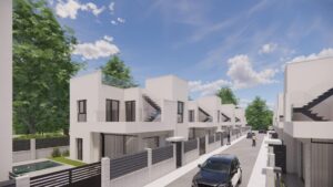 Nowoczesne, nowo wybudowane wille w La Herrada Los Montesinos z prywatnym basenem Ekskluzywny projekt mieszkaniowy w spokojnej okolicy Położona w prestiżowej urbanizacji La Herrada w Los Montesinos, ta ekskluzywna inwestycja obejmująca 16 nowoczesnych willi zapewnia prywatność, komfort i doskonałą jakość życia. La Herrada słynie z spokojnej atmosfery, bliskości codziennych usług i uprzywilejowanego położenia pomiędzy słynnymi słonymi jeziorami Torrevieja i La Mata. Jest to idealna lokalizacja dla osób poszukujących relaksującego i zdrowego śródziemnomorskiego stylu życia na południu Costa Blanca. Nowoczesny design z optymalną przestrzenią wewnętrzną Każda willa ma 110 m² dobrze zaplanowanej powierzchni mieszkalnej rozmieszczonej na dwóch piętrach, zaprojektowanej tak, aby maksymalnie wykorzystać naturalne światło i funkcjonalność. Nieruchomości, zbudowane na działkach o powierzchni od 185 m², oferują przestronne obszary zewnętrzne, idealne do opalania się, rozrywki lub relaksu przy prywatnym basenie. Wygodny układ na dwóch piętrach Na parterze znajduje się otwarty salon z w pełni zintegrowaną kuchnią i bezpośrednim dostępem do ogrodu i basenu. Na tym poziomie znajduje się również jedna sypialnia, w pełni wyposażona łazienka i wygodna pralnia. Na piętrze znajdują się dwie przestronne sypialnie, każda z własną łazienką, z których jedna jest łazienką przylegającą. Obie sypialnie mają dostęp do prywatnego otwartego tarasu o powierzchni 17 m². Dla tych, którzy chcą mieć jeszcze więcej przestrzeni na świeżym powietrzu, dostępne jest opcjonalne solarium na dachu, dostępne za dodatkową opłatą. Wysokiej jakości wykończenia i nowoczesne wyposażenie Wille wyposażone są w wysokiej jakości elementy wykończeniowe, takie jak meble łazienkowe, lustra, kabiny prysznicowe i ogrzewanie podłogowe we wszystkich łazienkach. Istnieje możliwość instalacji klimatyzacji kanałowej, bramy wjazdowej z napędem elektrycznym, prywatnego parkingu na działce oraz ogrodzonego dostępu do osiedla przez prywatną wewnętrzną ulicę. Doskonała lokalizacja w pobliżu kluczowych udogodnień i atrakcji Plaże Guardamar i Torrevieja 9 km La Marquesa Golf, La Finca Golf i Vistabella Golf w promieniu 5 km Lotnisko w Alicante 29 km Parki przyrodnicze, słone jeziora, trasy rowerowe i szlaki turystyczne w pobliżu Komfortowe życie w samym sercu Costa Blanca Te nowo wybudowane wille w Los Montesinos oferują idealne połączenie nowoczesnego komfortu, naturalnego otoczenia i doskonałej dostępności. Niezależnie od tego, czy szukasz stałego miejsca zamieszkania, czy domu wakacyjnego, ta inwestycja zapewnia wszystko, czego potrzebujesz, aby cieszyć się spokojnym i wygodnym śródziemnomorskim stylem życia. Skontaktuj się z nami już dziś, aby umówić się na oglądanie nieruchomości i zapewnić sobie nowy dom w La Herrada.