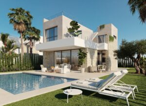Nowoczesne, nowo wybudowane wille z widokiem na morze w Finestrat, Alicante Ekskluzywna inwestycja w doskonałej lokalizacji Położony w jednej z najbardziej poszukiwanych lokalizacji na wybrzeżu Costa Blanca, ten ekskluzywny projekt mieszkaniowy oferuje 18 niezależnych willi o nowoczesnym i funkcjonalnym designie. Położone w pobliżu Finestrat (4 km) i Benidormu (5 km), wille cieszą się wyjątkową lokalizacją z panoramicznym widokiem na morze i bezpośrednim widokiem na prestiżowe pole golfowe Puig Campana. Międzynarodowe lotnisko w Alicante znajduje się zaledwie 40 km od obiektu, co zapewnia wygodę i sprawność podróży. Nowoczesny design i przestronny układ Każda willa została starannie zaprojektowana, aby połączyć elegancję, komfort i praktyczność. Domy o powierzchni od 330 m² do 460 m² są rozmieszczone na dwóch kondygnacjach i oferują otwarte i jasne przestrzenie. Niektóre jednostki posiadają również piwnicę o powierzchni 66 m² z patio, w której znajdują się dwie dodatkowe sypialnie, dwie łazienki i salon, co zapewnia dodatkową wszechstronność dla gości lub do spędzania wolnego czasu. Życie na świeżym powietrzu i prywatne udogodnienia Każda nieruchomość jest oddawana do użytku z w pełni wykończonym ogrodem, prywatnym basenem, ogrodzeniem oraz bramami dla pieszych i pojazdów. Solarium na dachu stanowi idealne miejsce na relaks, cieszenie się słońcem i podziwianie zapierających dech w piersiach widoków na Morze Śródziemne. Przestronne tarasy i tereny zielone zostały zaprojektowane z myślą o życiu na świeżym powietrzu, pozwalając w pełni wykorzystać wyjątkowy klimat regionu. Wnętrza z wysokiej jakości wykończeniem Parter ma otwarty plan z salonem, jadalnią i w pełni wyposażoną nowoczesną kuchnią z blatem kwarcowym i zintegrowanymi urządzeniami. Okna od podłogi do sufitu zapewniają naturalne światło i tworzą płynne przejście między wnętrzem a otoczeniem zewnętrznym. Sypialnia na parterze dodaje elastyczności, a na piętrze znajdują się dwie kolejne sypialnie, w tym apartament główny z garderobą, prywatną łazienką i tarasem o powierzchni 30 m² z widokiem na morze. Wysokiej jakości wykończenia obejmują białą lakierowaną stolarkę wewnętrzną, szafy wnękowe, stolarkę zewnętrzną z przegrodą termiczną, rolety z napędem elektrycznym w sypialniach oraz 3 łazienki z designerskimi meblami, podwieszanymi toaletami i szklanymi ekranami. Styl życia i otoczenie Wille te oferują uprzywilejowany styl życia w pobliżu złotych plaż, centrów handlowych i atrakcji dla całej rodziny, takich jak park rozrywki Terra Mítica (5 km). Miłośnicy golfa mogą skorzystać z pól golfowych Puig Campana Golf (1 km) i Villaitana Golf (6 km) z dwoma polami zaprojektowanymi przez Nicklaus Design, które zapewniają światowej klasy wrażenia. Twój nowy dom na Costa Blanca Niezależnie od tego, czy szukasz domu wakacyjnego, czy stałego miejsca zamieszkania, te nowoczesne wille na Costa Blanca łączą w sobie luksus, lokalizację i komfort. Skontaktuj się z nami już dziś, aby umówić się na wizytę i zrobić pierwszy krok w kierunku swojego wymarzonego domu w Hiszpanii.
