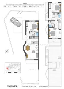 Nowo wybudowany kompleks mieszkaniowy z nowoczesnymi bungalowami i domami szeregowymi w Pilar de la Horadada. Nowo wybudowane domy szeregowe oferują 3 sypialnie, 3 łazienki, kuchnię otwartą na salon z jadalnią, wbudowane szafy i taras. Wszystkie domy posiadają prywatne miejsce parkingowe i schowek. Pilar de la Horadada to typowe hiszpańskie miasteczko położone w najdalej na południe wysuniętej części Costa Blanca. Przy głównej ulicy znajdują się supermarkety, liczne sklepy, restauracje i bary oraz kilka uroczych placów. Piękne plaże Torre de la Horadada i Mil Palmeras z piaszczystą promenadą oddalone są zaledwie o 5 minut. Lotniska w Corvera (Murcia) i Alicante oddalone są odpowiednio o 40 i 55 minut.