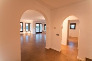 Willa w stylu śródziemnomorskim z widokiem na morze na sprzedaż w Moraira, Costa Blanca Elegancka willa z panoramicznym widokiem na morze Ta piękna willa w stylu śródziemnomorskim na sprzedaż w Moraira (Costa Blanca, Alicante) oferuje zapierające dech w piersiach widoki na przylądek Moraira, morze i okoliczne wybrzeże. Położona na wzgórzu nieruchomość zapewnia całkowitą prywatność i spokój, a jednocześnie znajduje się zaledwie 2 km od tętniącego życiem centrum Moraira, złotych plaż, supermarketów, restauracji i kawiarni. Willa, zbudowana na prawie płaskiej działce o powierzchni 897 m2, zapewnia wyjątkowy komfort, piękne przestrzenie zewnętrzne i wspaniałe widoki ze wszystkich głównych pomieszczeń. Przestronny układ na dwóch piętrach Willa jest podzielona na dwa poziomy zaprojektowane tak, aby maksymalnie wykorzystać naturalne światło i widok na morze. Na parterze znajduje się jasny salon z jadalnią i kominkiem, przestrzeń gotowa do zainstalowania nowoczesnej kuchni i pralni (wstępnie zainstalowana instalacja wodno-kanalizacyjna i elektryczna) oraz w pełni wyposażona łazienka z prysznicem. Na tym piętrze znajduje się również połączony, ale niezależny apartament dla gości z własnym wejściem, składający się z salonu z jadalnią, który może służyć jako apartament główny, sypialni, łazienki i dodatkowej przestrzeni przystosowanej do aranżacji garderoby lub łazienki. Wejście do apartamentu zdobi pięknie odrestaurowane drzwi z litego drewna, które dodają autentycznego śródziemnomorskiego uroku. Na piętrze, na które prowadzą wewnętrzne schody, znajdują się dwie wygodne sypialnie, łazienka i duży taras solarium z przepięknym widokiem na morze — idealny do relaksu lub podziwiania zachodu słońca. Życie na świeżym powietrzu i śródziemnomorski urok Wygląd zewnętrzny willi został zaprojektowany tak, aby w pełni cieszyć się śródziemnomorskim stylem życia. Znajdują się tu przestronne tarasy, prywatny basen o unikalnym kształcie z prysznicem na świeżym powietrzu oraz łatwy w utrzymaniu ogród z automatycznym nawadnianiem. Jest tu dużo miejsca na posiłki na świeżym powietrzu, opalanie się i zabawę z rodziną i przyjaciółmi. Wysokiej jakości wyposażenie i wykończenie Nieruchomość ta oferuje nowoczesny komfort w połączeniu z śródziemnomorskim charakterem, w tym Aluminiowe stolarki z wykończeniem imitującym drewno i podwójnymi szybami Zasłony z napędem elektrycznym i moskitiery w sypialniach Wbudowane szafy z drzwiami przesuwnymi Centralne ogrzewanie grzejnikami Regulowane oświetlenie wewnętrzne Elektryczna brama przesuwna dla pojazdów i dostęp dla pieszych Prywatny parking na terenie działki Doskonała lokalizacja w pobliżu kluczowych udogodnień Centrum miasta Moraira i plaże: 2 km Pole golfowe La Sella: 15 km Port w Moraira: 2 km Centra handlowe: 5 km Międzynarodowe lotnisko w Alicante: 90 km Doświadcz najlepszego stylu życia w stylu śródziemnomorskim Ta wyjątkowa willa łączy prywatność, elegancję i wspaniałe widoki na morze w jednej z najbardziej pożądanych lokalizacji na Costa Blanca. Skontaktuj się z nami już dziś, aby umówić się na oglądanie lub poprosić o więcej informacji na temat tego pięknego domu w Moraira.
